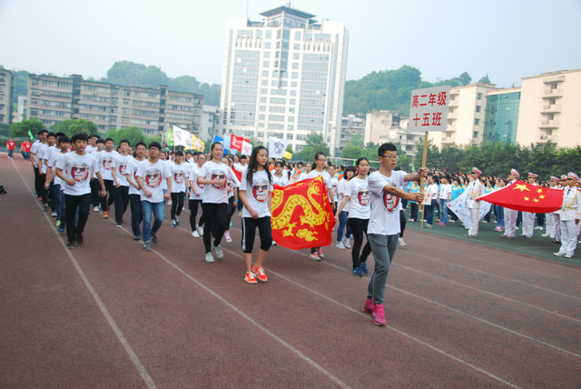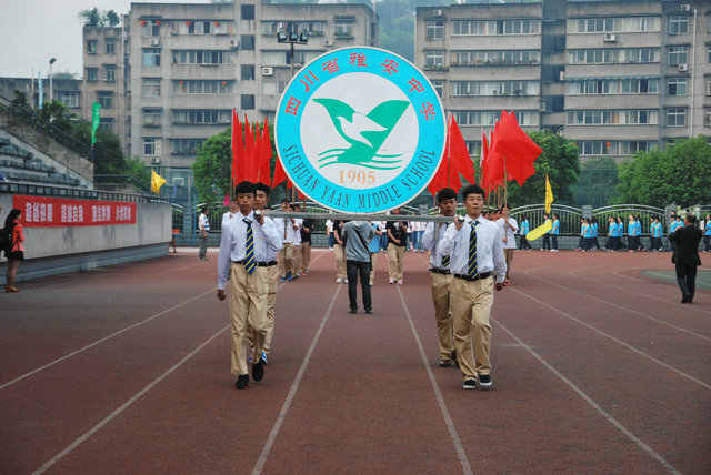 最后,由学校党委书记、校长程明宣布运动会开幕的指令,雅安中学2015年春季运动会拉开了序幕。 开幕式后,在组委会的组织下进行了“舞动青春”校园集体舞和“阳光跑步”比赛,其余各项比赛也于下午起陆续展开。