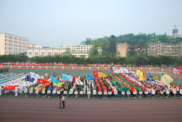 4月17日,雅安中学第十五届春季运动会开幕式在学校体育场隆重举行。市教育局关工委老同志、学生家长代表、雅安中学全体行政干部及初一、初二、高一、高二近3000师生参加了运动会开幕式。开幕式由政教处副主任叶兵主持。