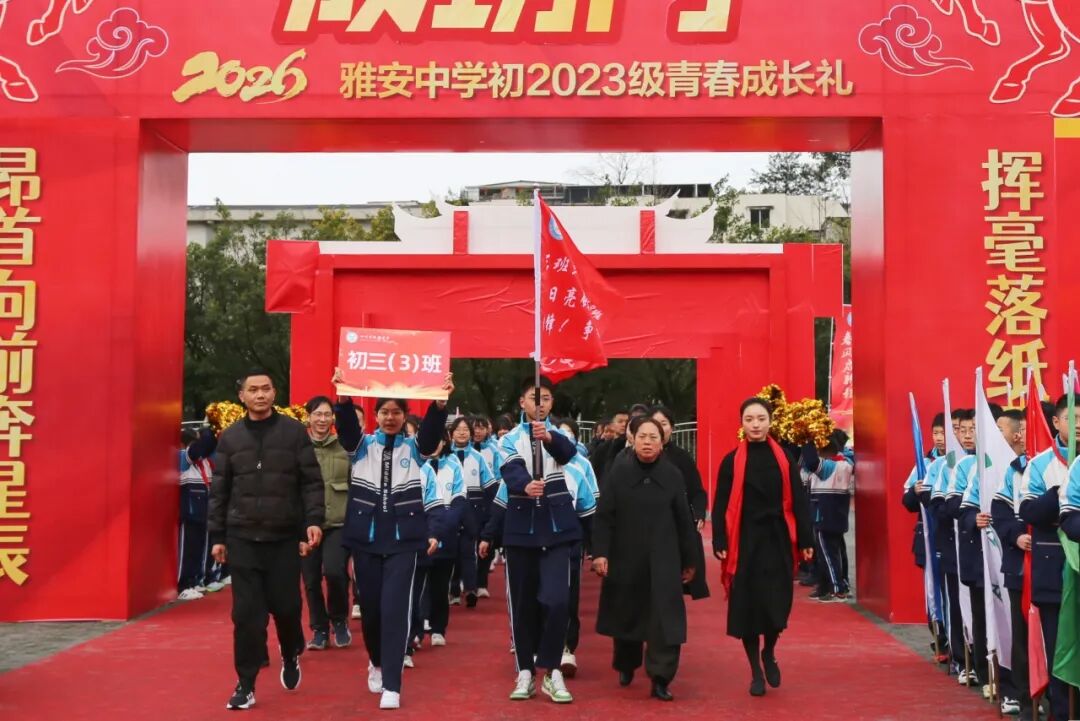 春风启新程,奋斗铸辉煌。3月9日,雅安中学育才校区2026年春季学期开学典礼暨初2023级青春成长礼隆重举行。育才校区全体师生、初2023级家长代表齐聚校园,共赴这场兼具仪式感与教育意义的青春盛会,为新学期扬帆启航。